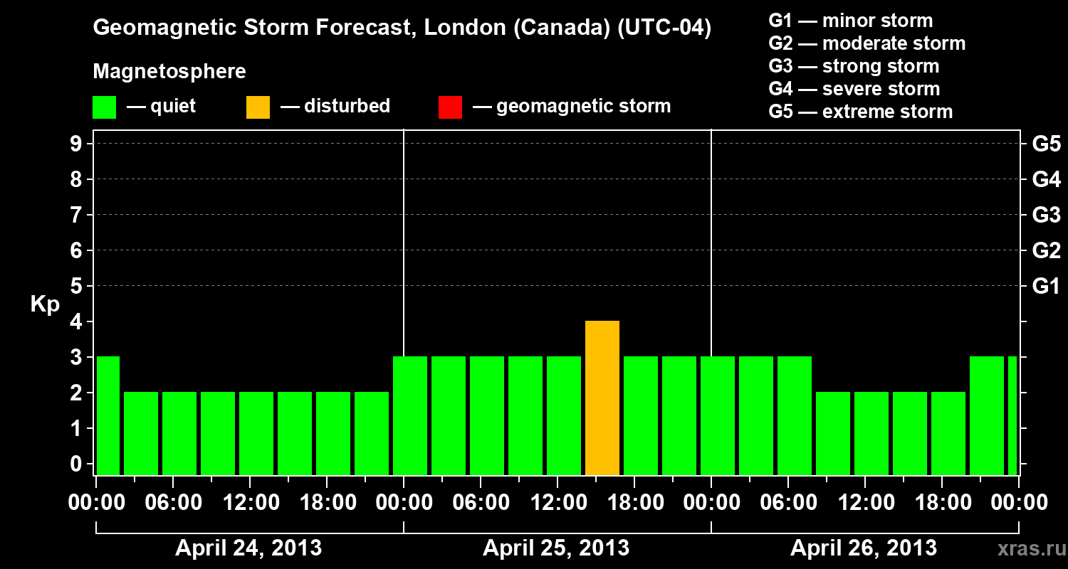 Geomagnetic storm forecast in London (Canada) for Apr 24, 2013