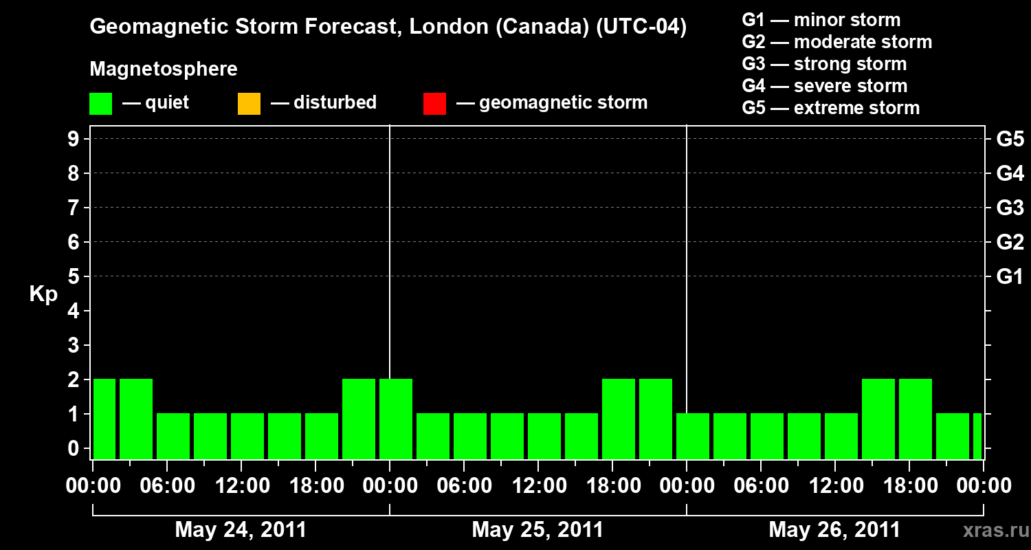 Geomagnetic storm forecast in London (Canada) for May 24, 2011