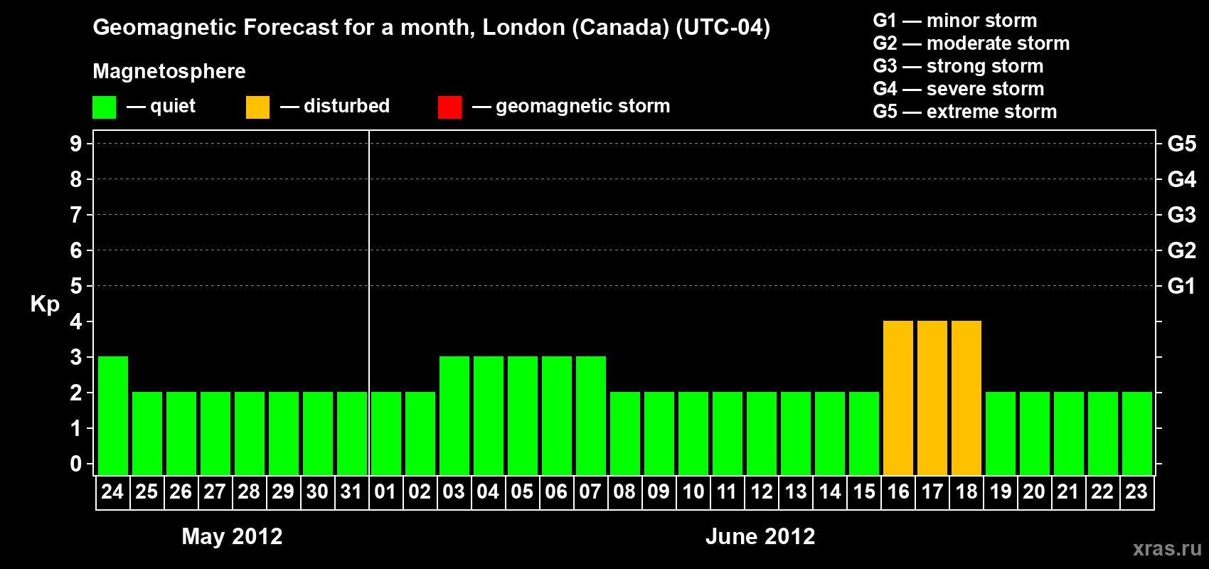 Geomagnetic storm forecast in London (Canada) for May 24, 2012