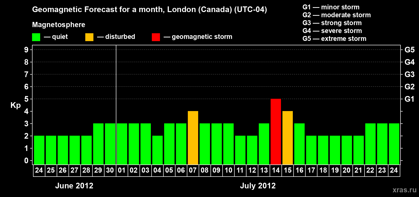 Geomagnetic storm forecast in London (Canada) for Jun 24, 2012