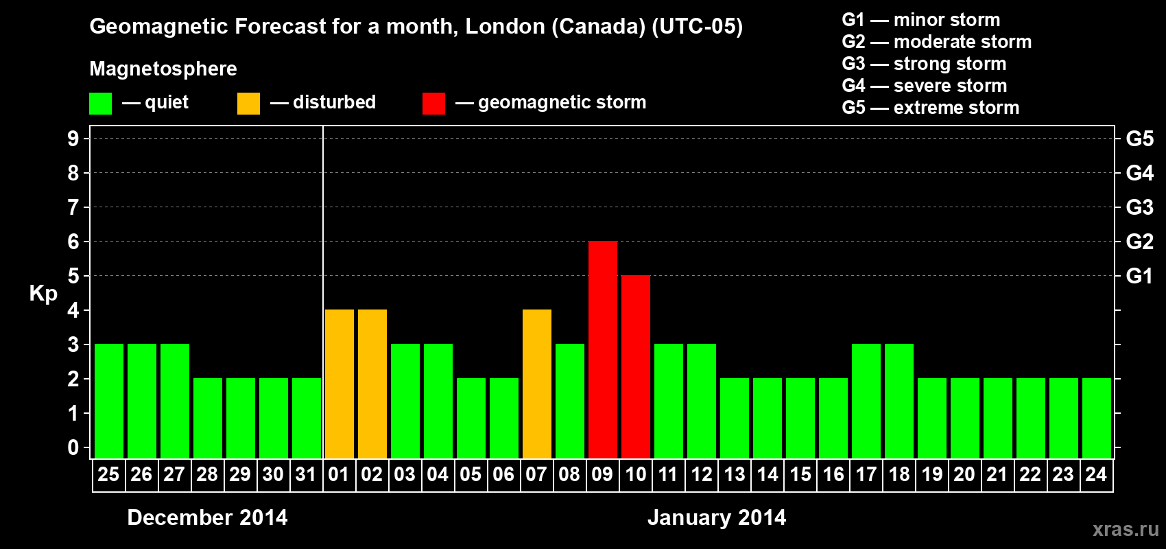 Geomagnetic storm forecast in London (Canada) for Dec 25, 2013