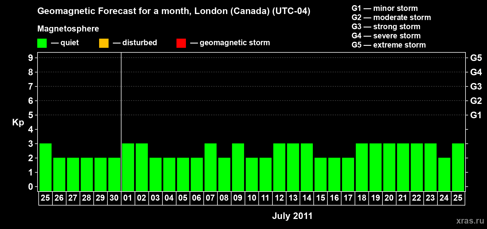 Geomagnetic storm forecast in London (Canada) for Jun 25, 2011