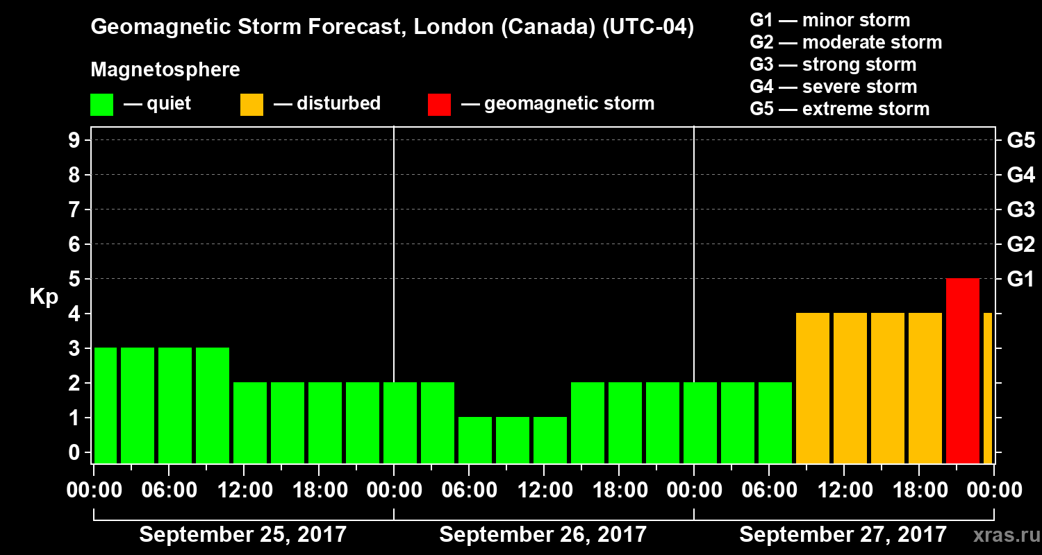 Geomagnetic storm forecast in London (Canada) for Sep 25, 2017