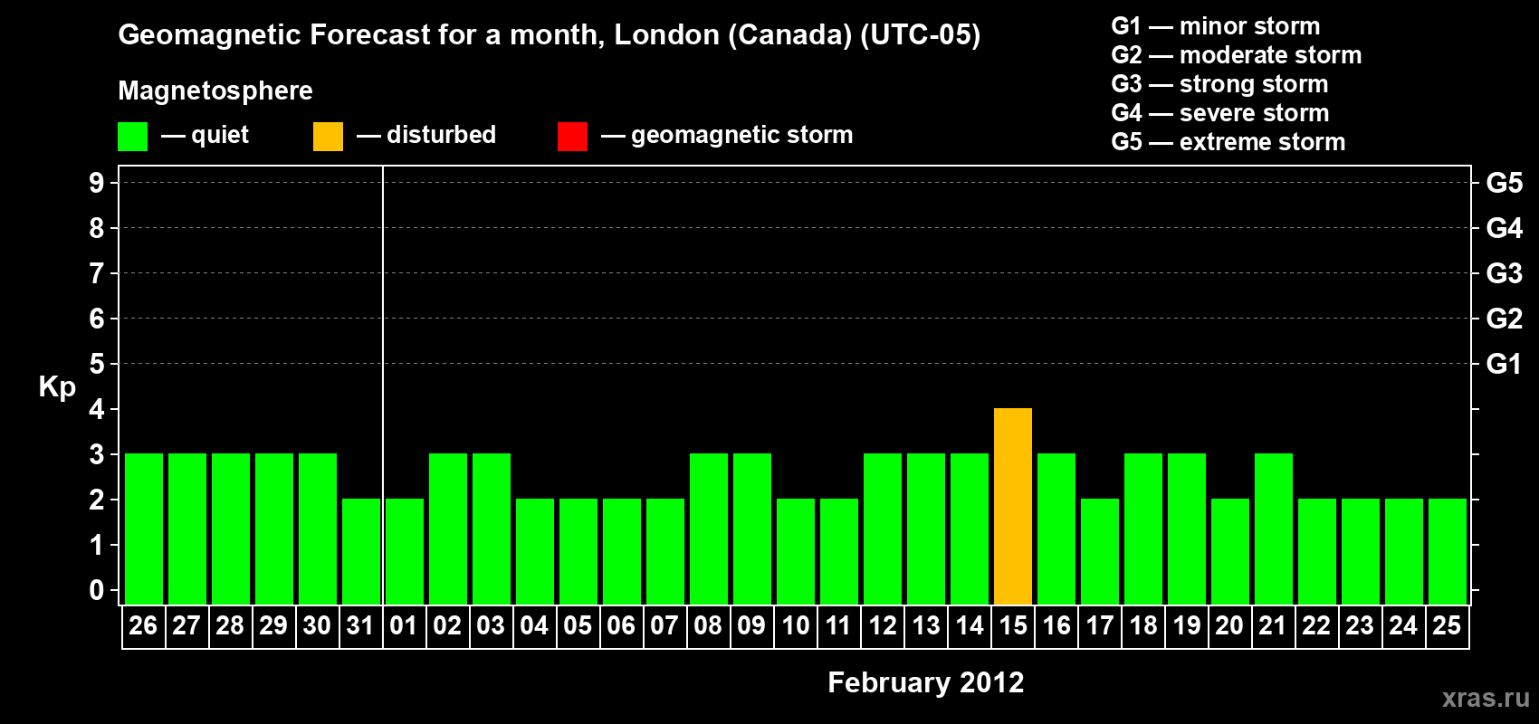 Geomagnetic storm forecast in London (Canada) for Jan 26, 2012