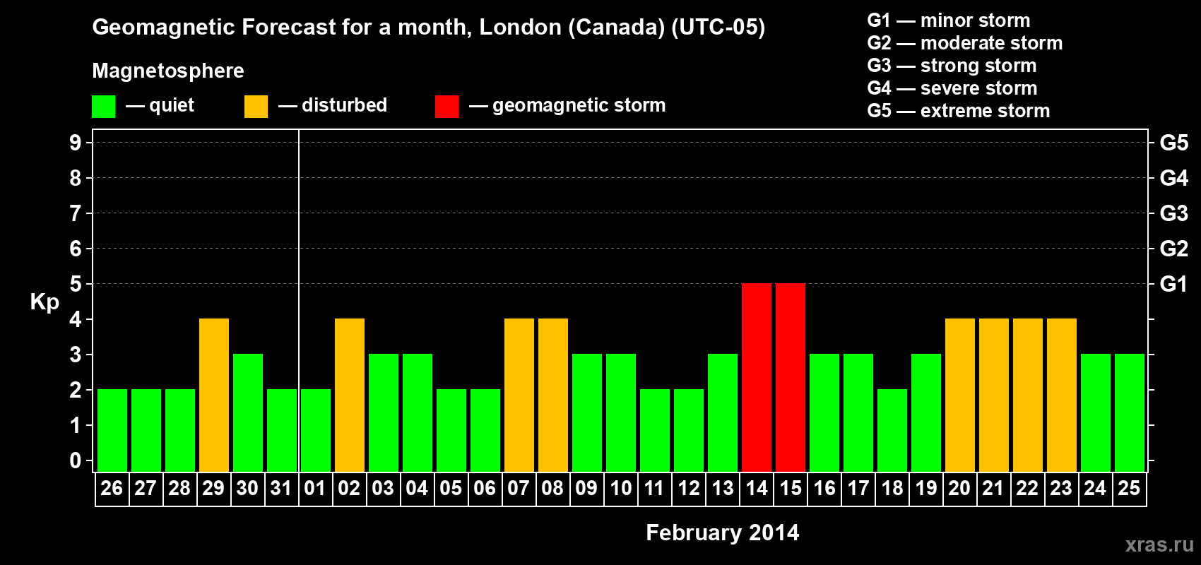 Geomagnetic storm forecast in London (Canada) for Jan 26, 2014