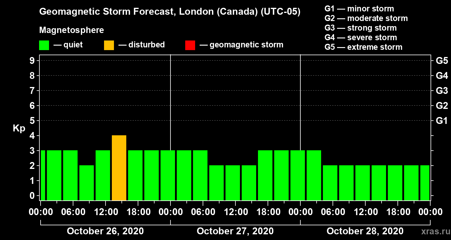 Geomagnetic activity forecast in London (Canada) — Oct 26, 2020