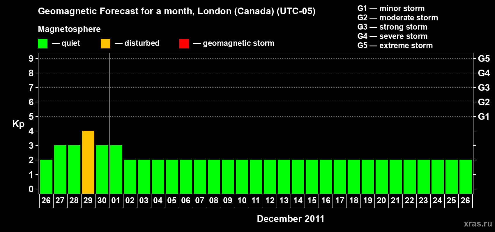 Geomagnetic storm forecast in London (Canada) for Nov 26, 2011