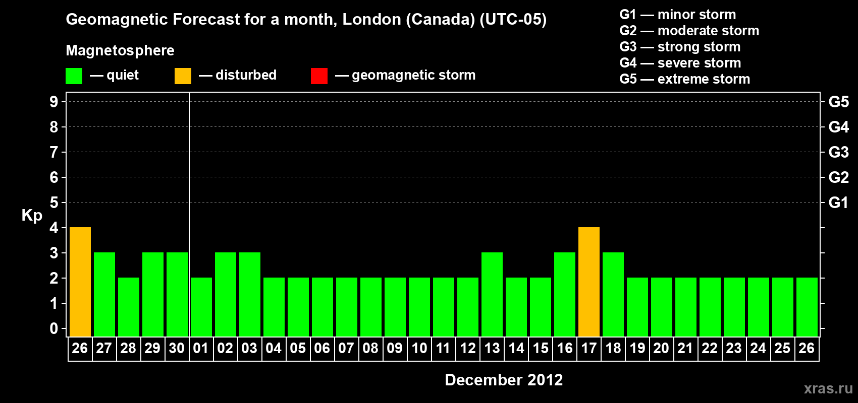 Geomagnetic storm forecast in London (Canada) for Nov 26, 2012