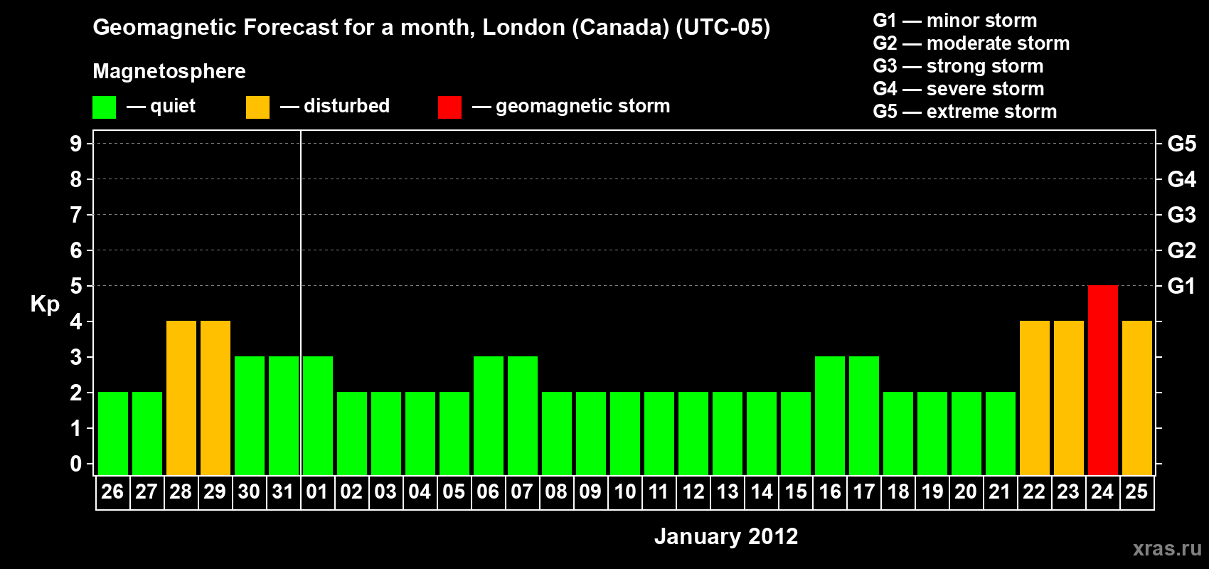 Geomagnetic storm forecast in London (Canada) for Dec 26, 2011