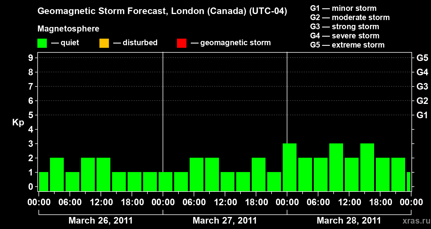 Geomagnetic storm forecast in London (Canada) for Mar 26, 2011