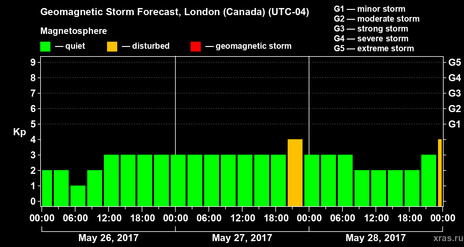Geomagnetic storm forecast in London (Canada) for May 26, 2017
