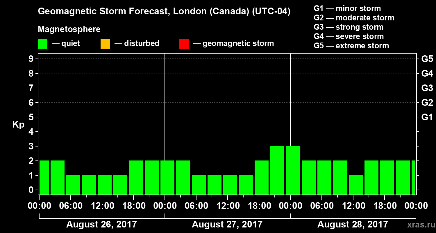 Geomagnetic storm forecast in London (Canada) for Aug 26, 2017