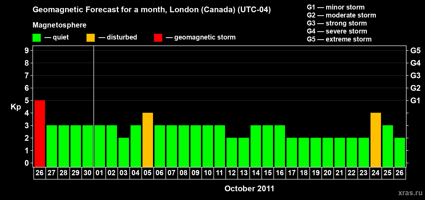 Geomagnetic storm forecast in London (Canada) for Sep 26, 2011