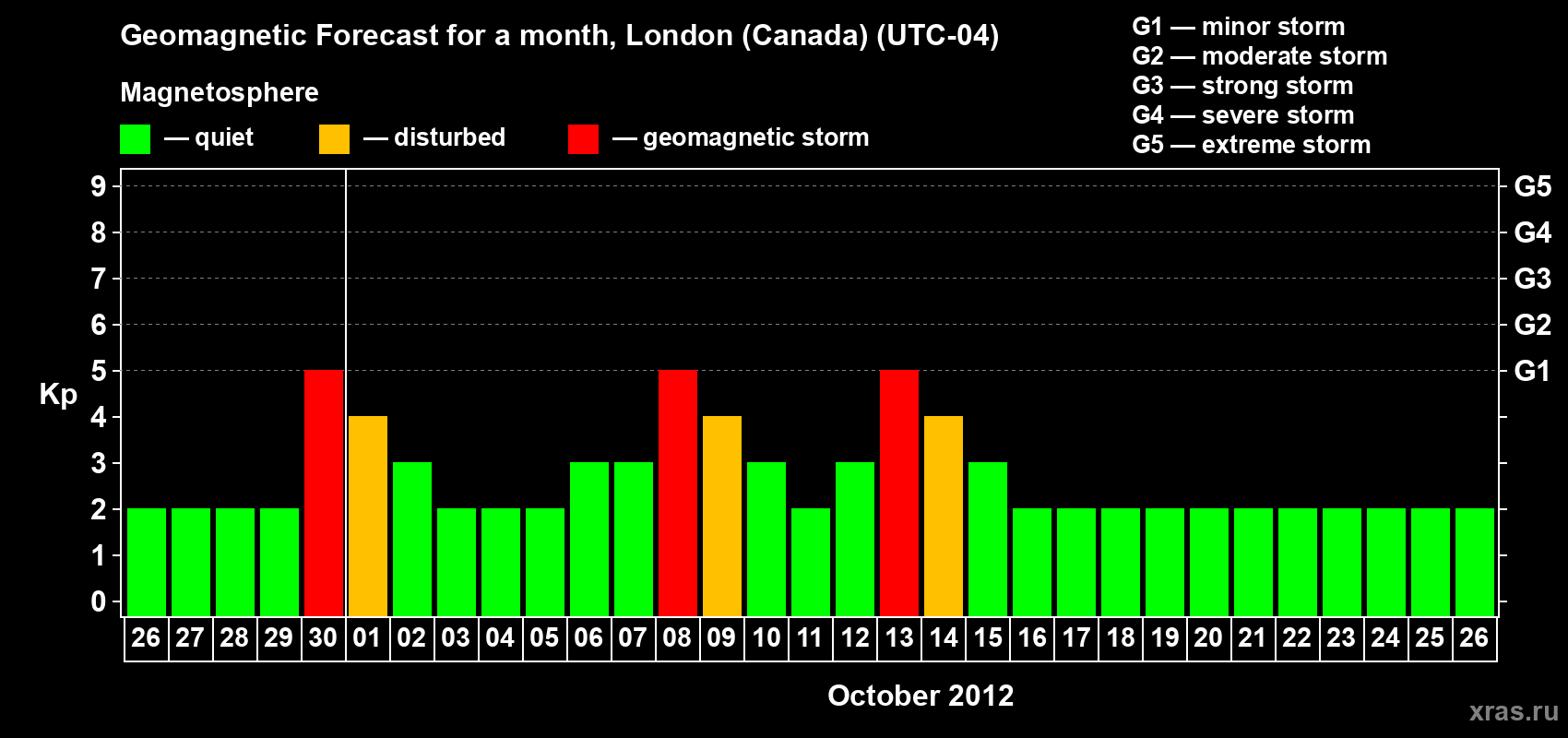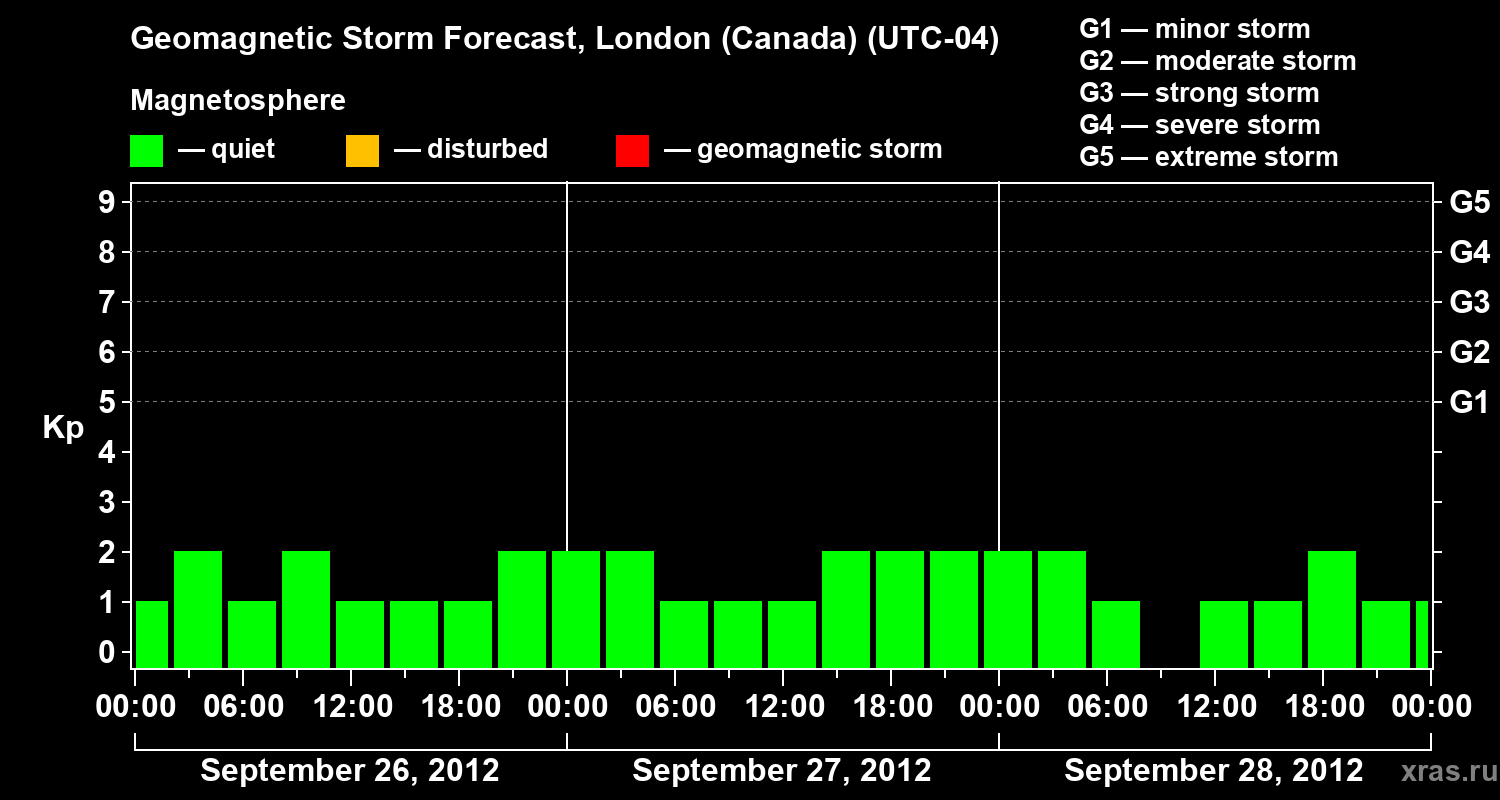 Geomagnetic storm forecast in London (Canada) for Sep 26, 2012