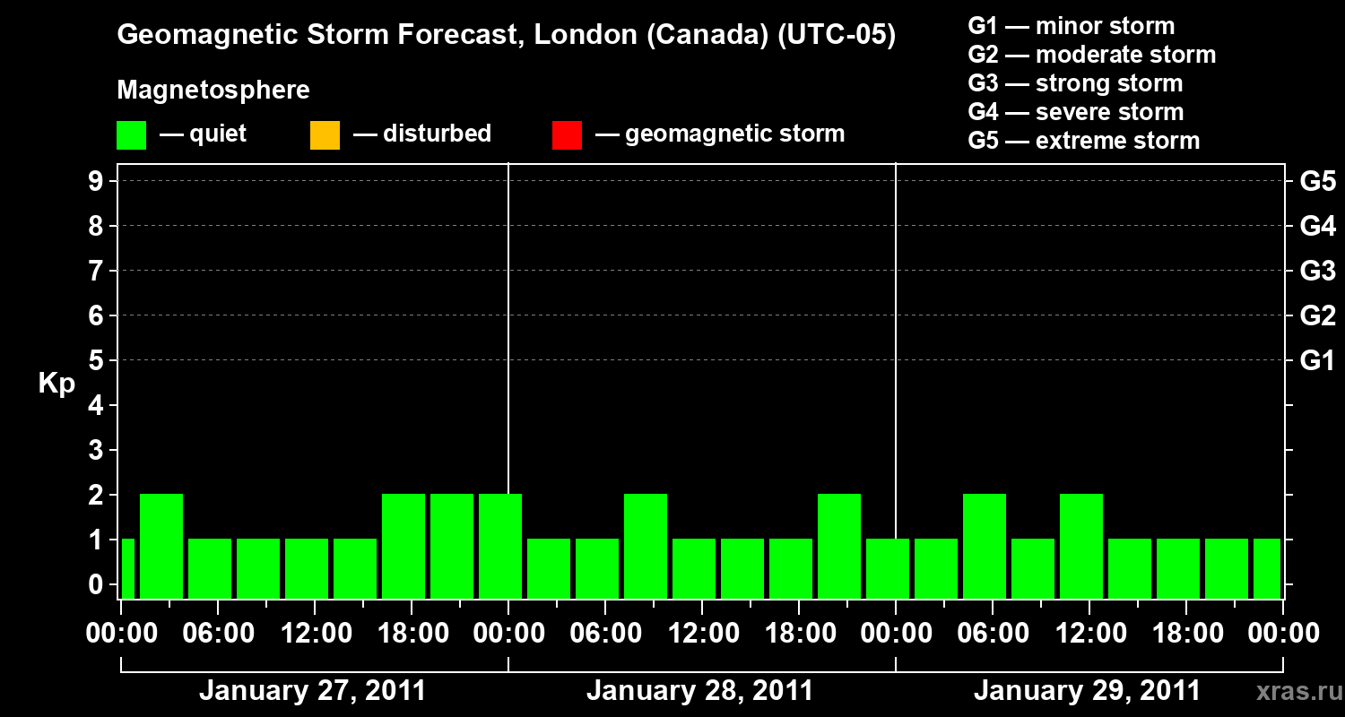 Geomagnetic storm forecast in London (Canada) for Jan 27, 2011