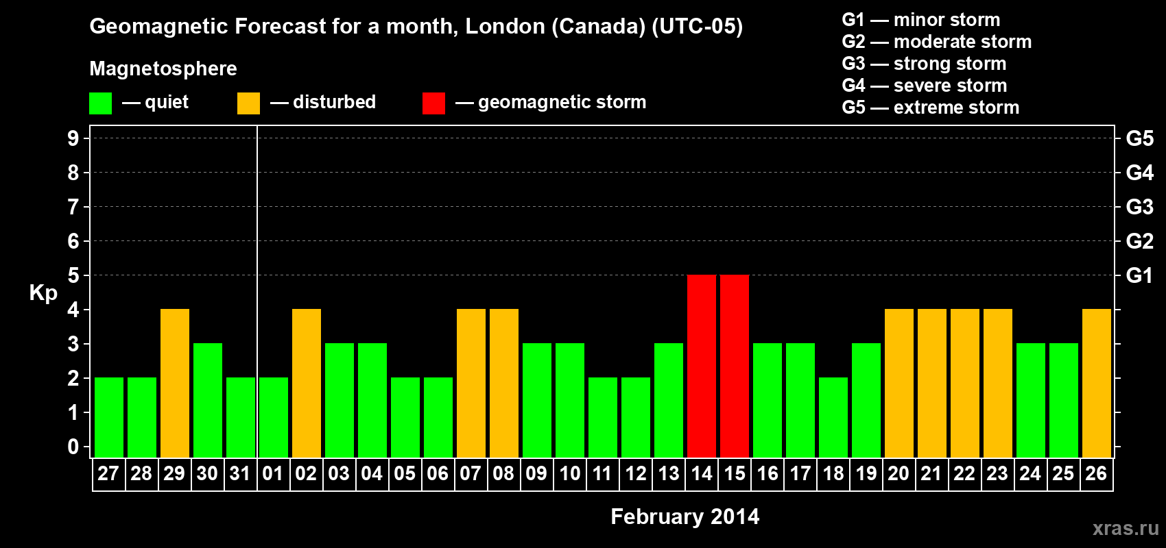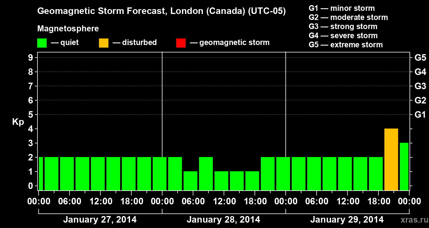 Geomagnetic storm forecast in London (Canada) for Jan 27, 2014