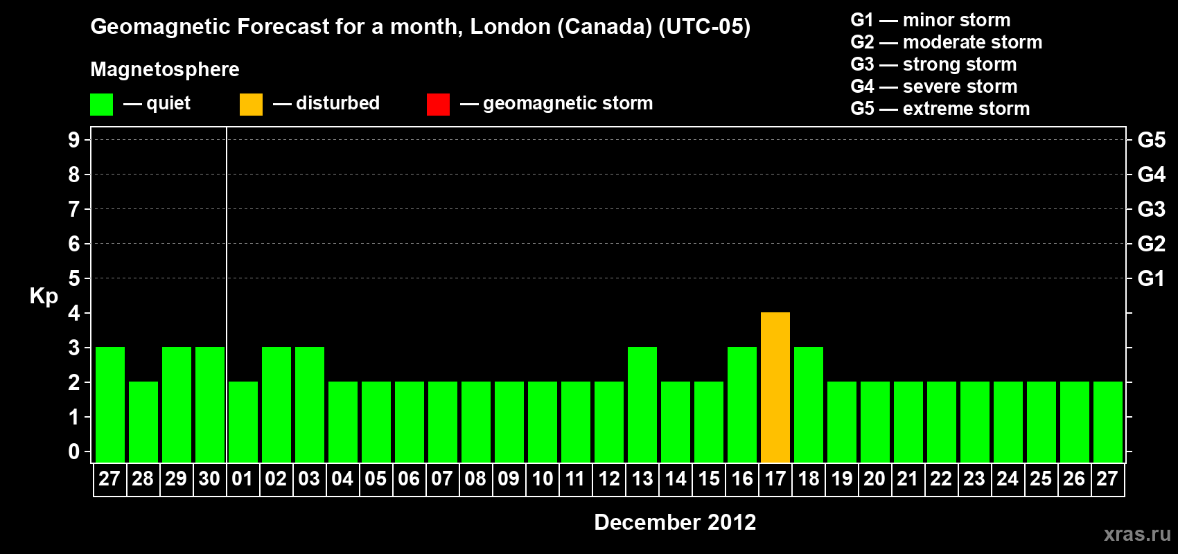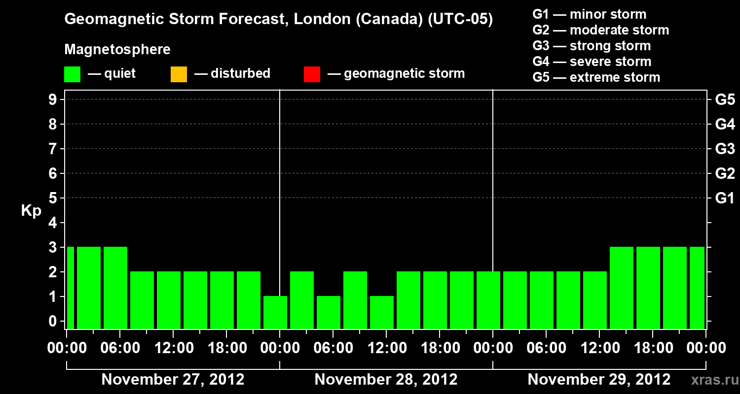 Geomagnetic storm forecast in London (Canada) for Nov 27, 2012