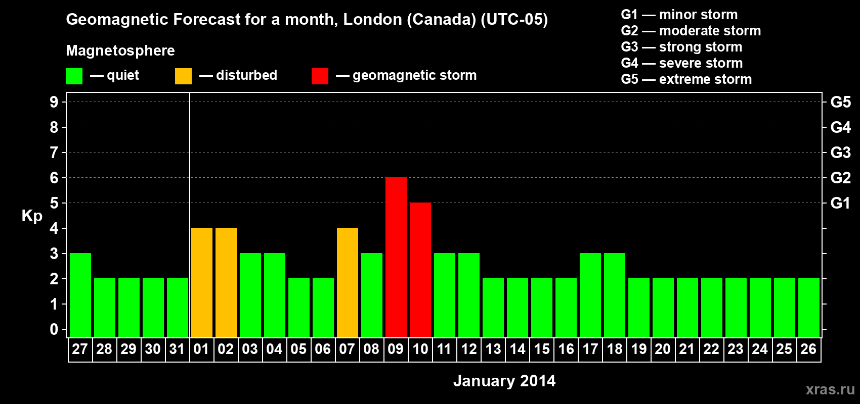 Geomagnetic storm forecast in London (Canada) for Dec 27, 2013