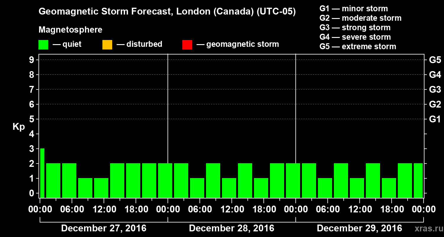 Geomagnetic storm forecast in London (Canada) for Dec 27, 2016