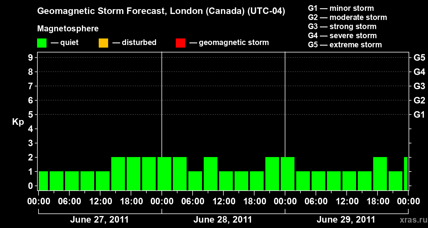 Geomagnetic storm forecast in London (Canada) for Jun 27, 2011