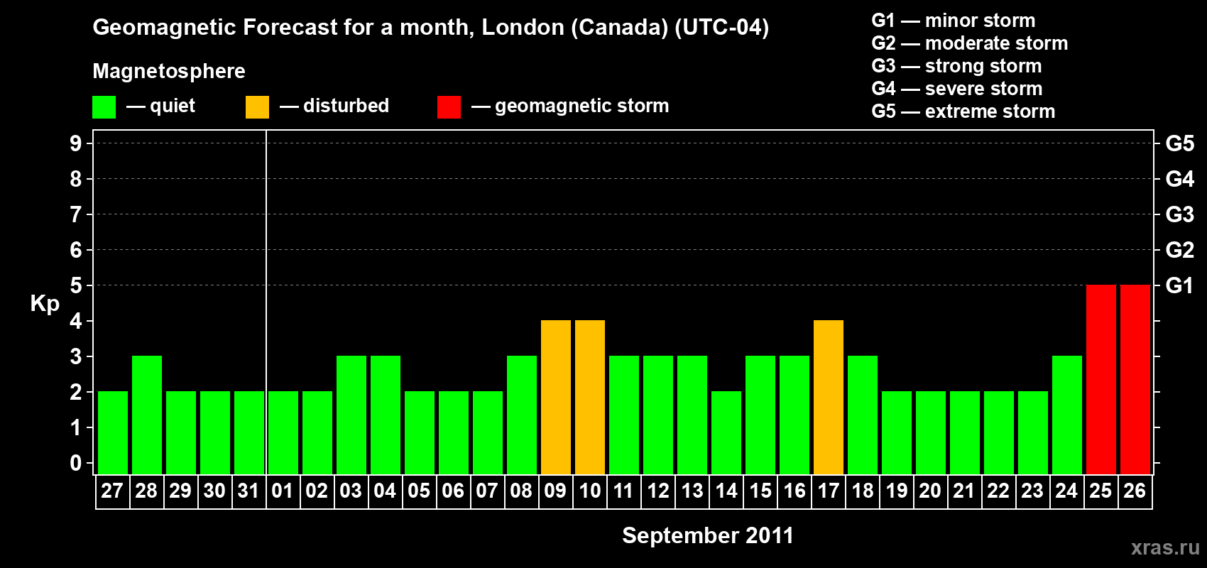 Geomagnetic storm forecast in London (Canada) for Aug 27, 2011