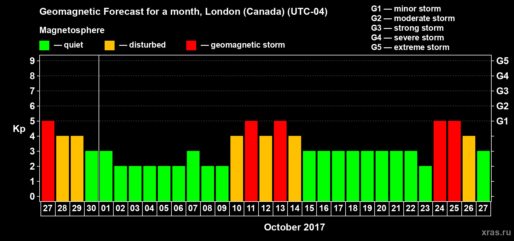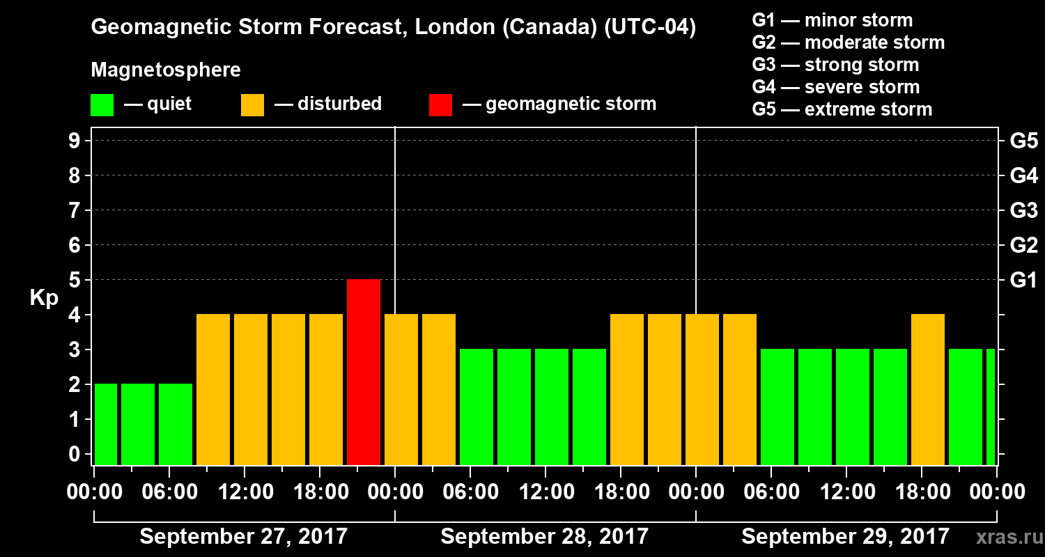 Geomagnetic storm forecast in London (Canada) for Sep 27, 2017