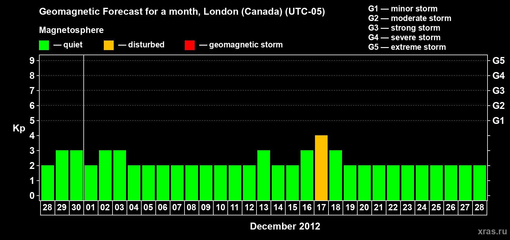 Geomagnetic storm forecast in London (Canada) for Nov 28, 2012