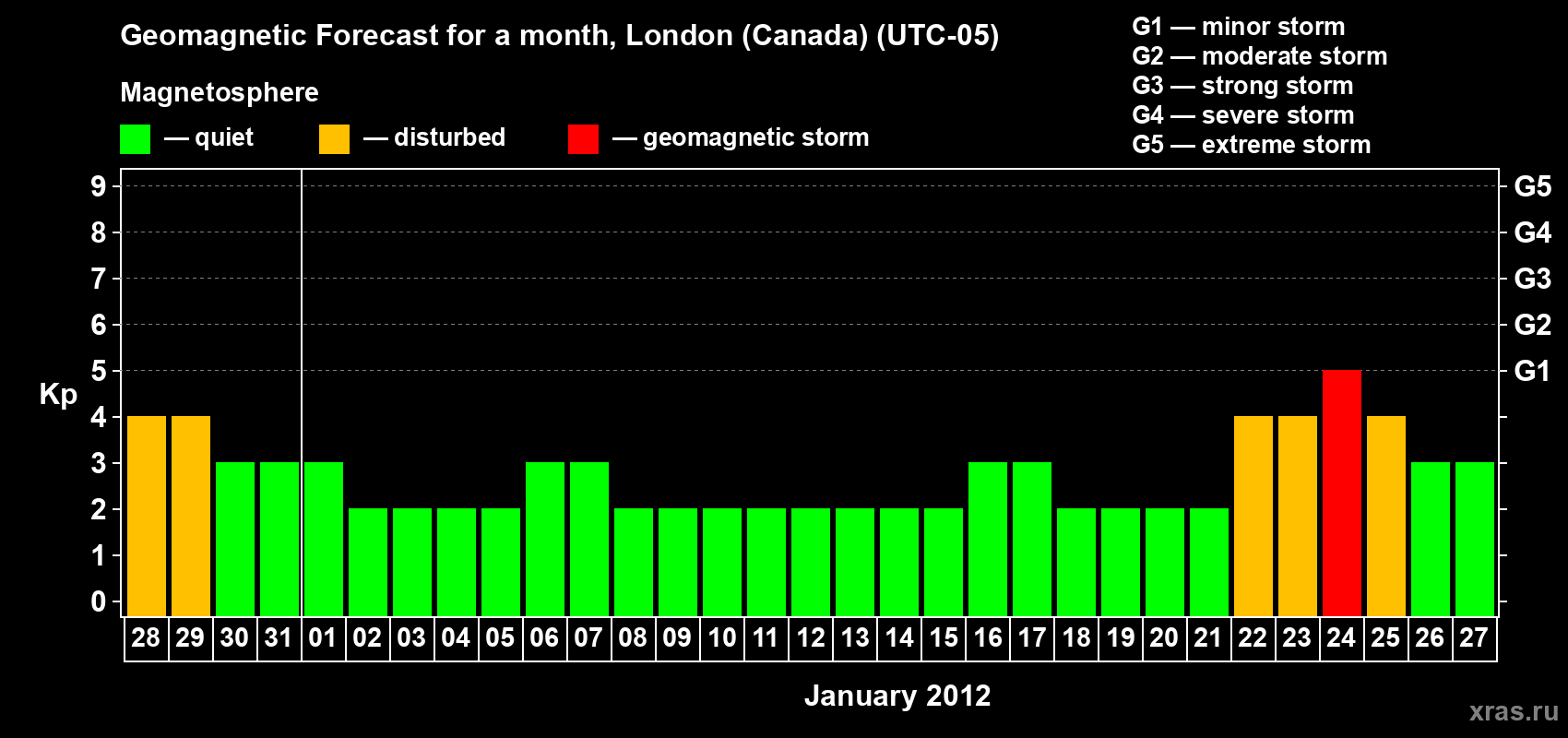 Geomagnetic storm forecast in London (Canada) for Dec 28, 2011
