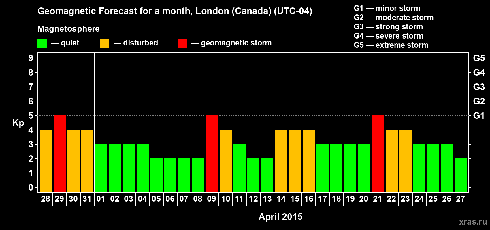 Geomagnetic activity forecast in London (Canada) — Mar 28, 2015