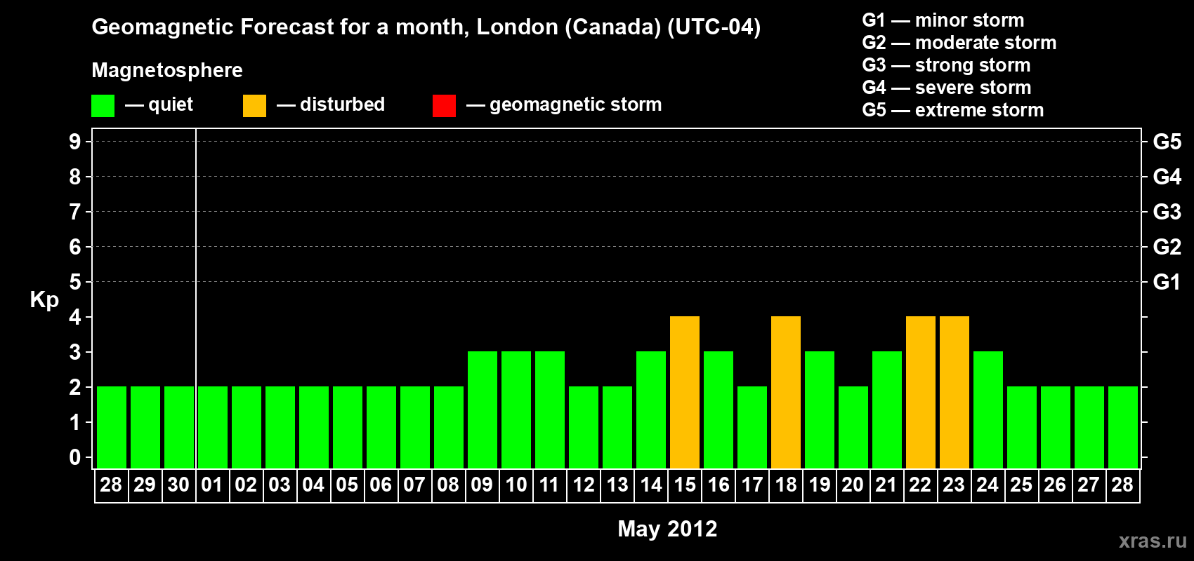 Geomagnetic storm forecast in London (Canada) for Apr 28, 2012