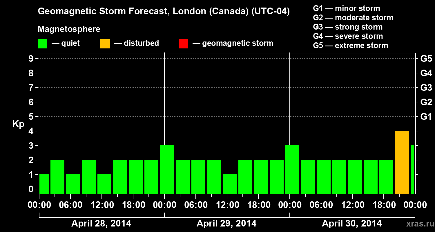 Geomagnetic storm forecast in London (Canada) for Apr 28, 2014