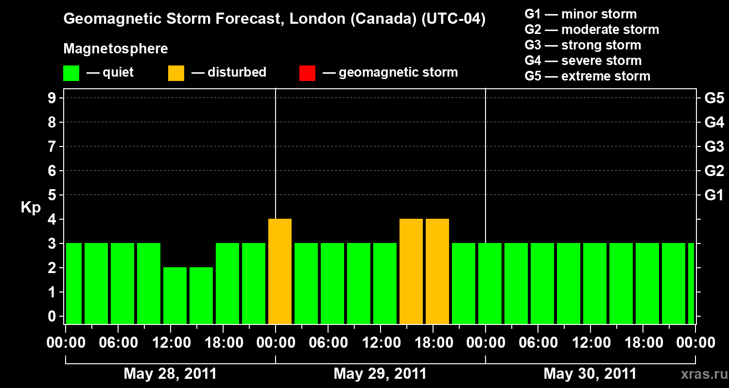 Geomagnetic storm forecast in London (Canada) for May 28, 2011