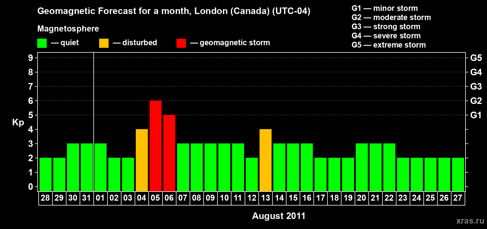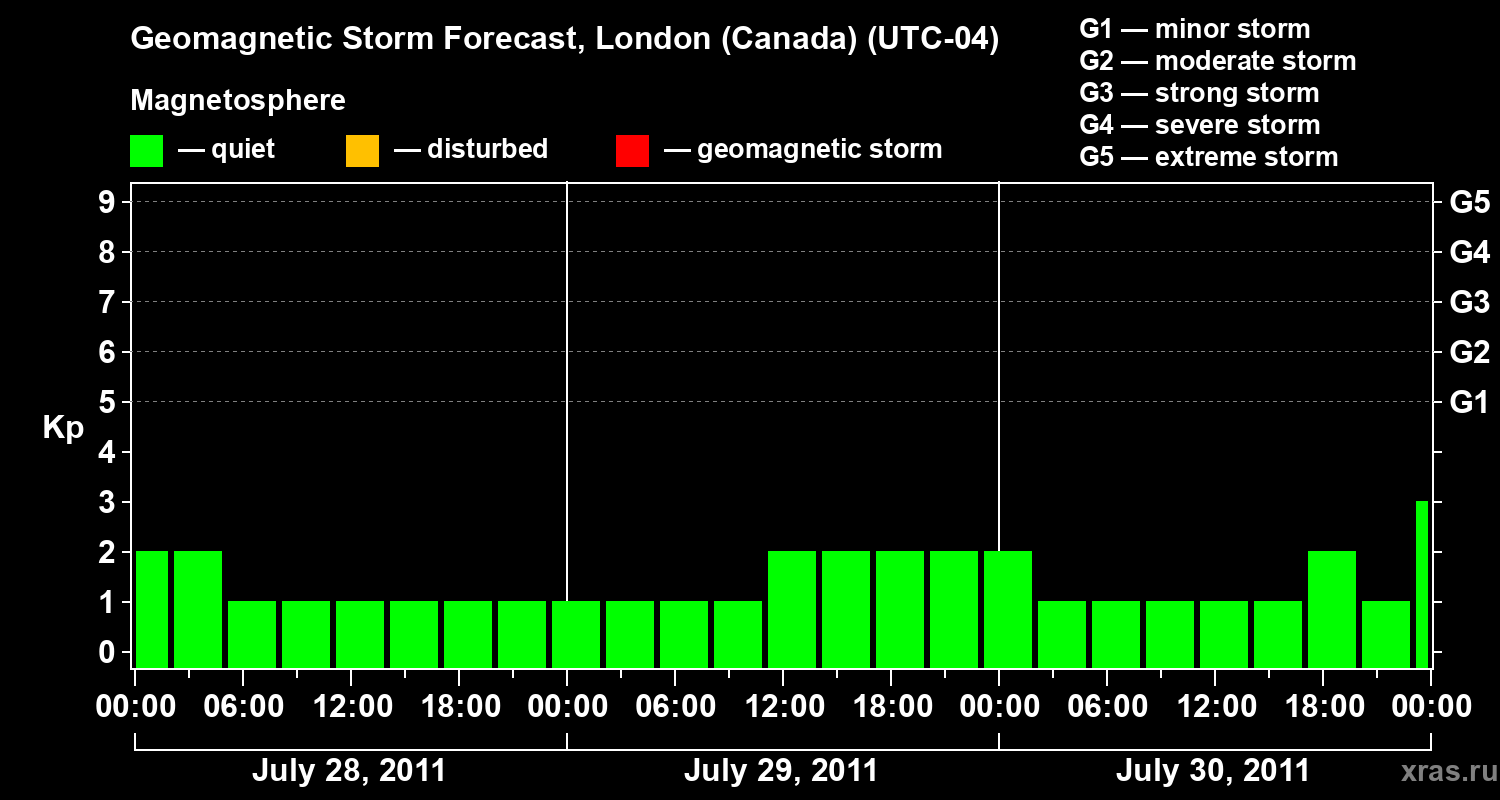 Geomagnetic storm forecast in London (Canada) for Jul 28, 2011
