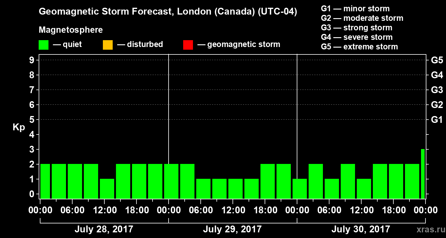 Geomagnetic storm forecast in London (Canada) for Jul 28, 2017