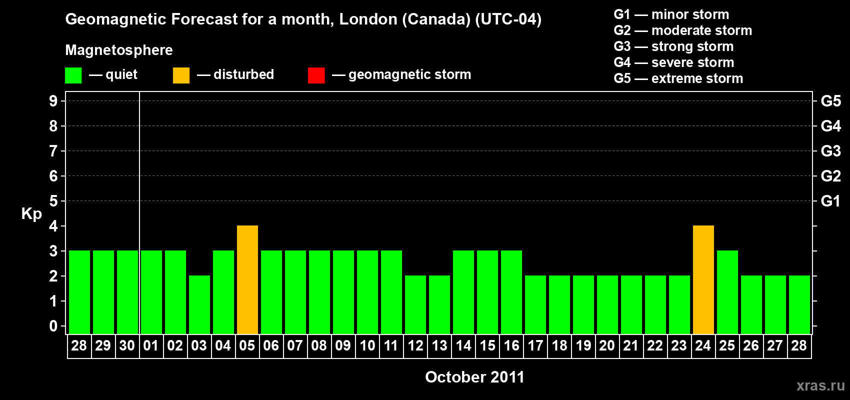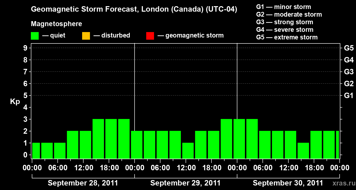 Geomagnetic storm forecast in London (Canada) for Sep 28, 2011