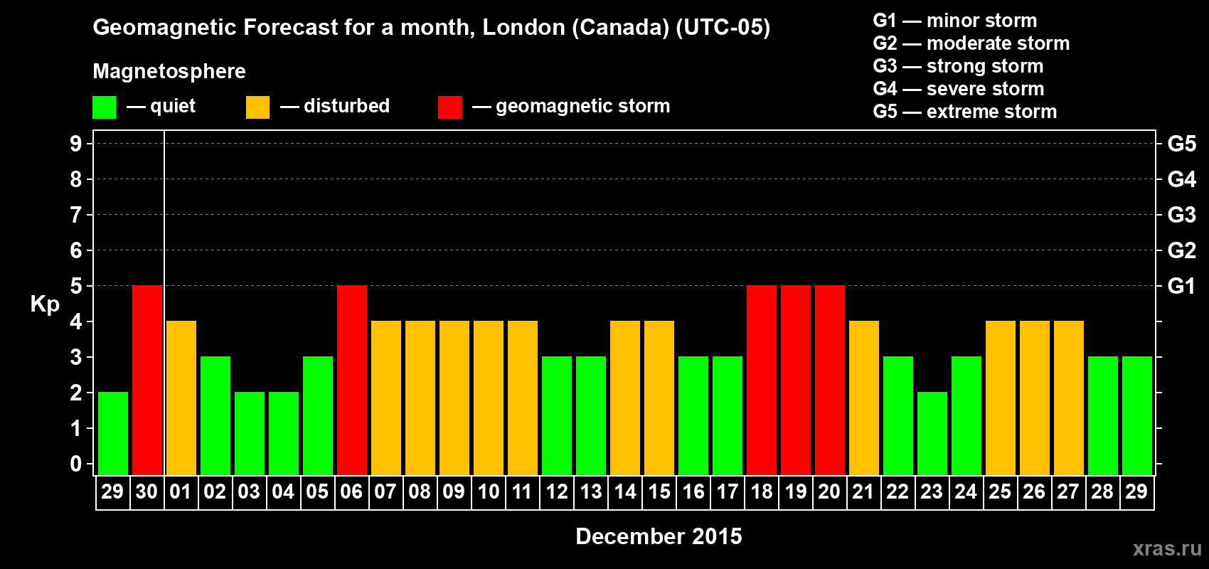 Geomagnetic storm forecast in London (Canada) for Nov 29, 2015