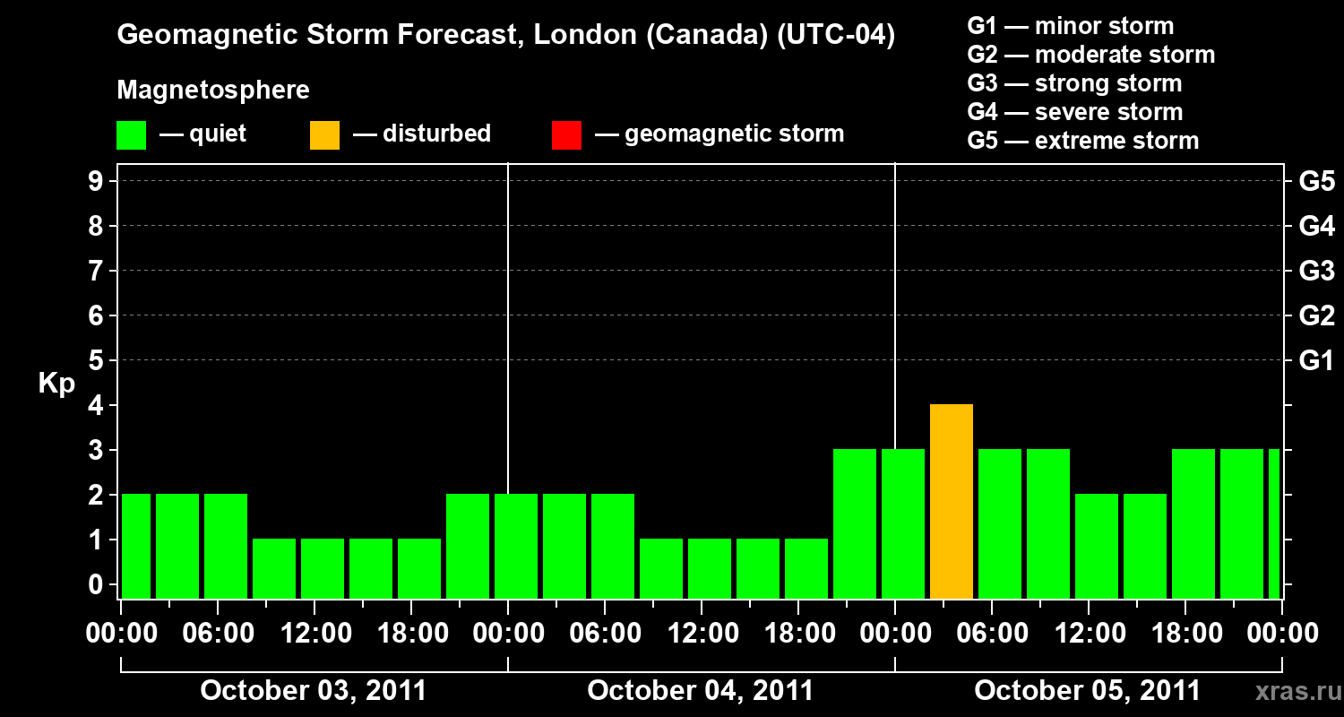 Geomagnetic storm forecast in London (Canada) for Oct 03, 2011