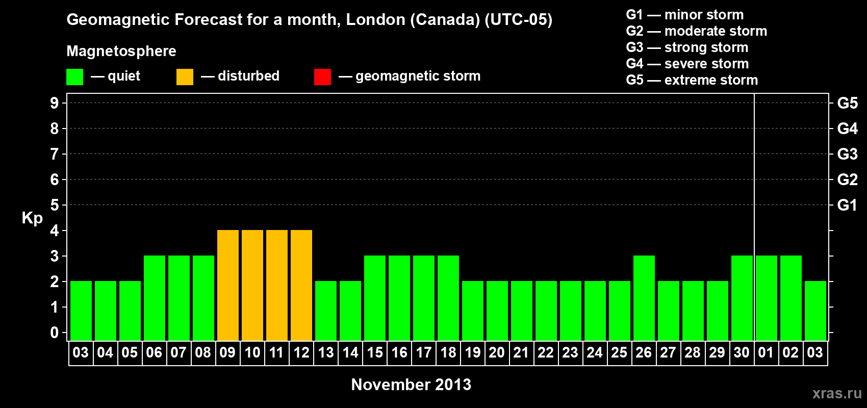 Geomagnetic storm forecast in London (Canada) for Nov 03, 2013