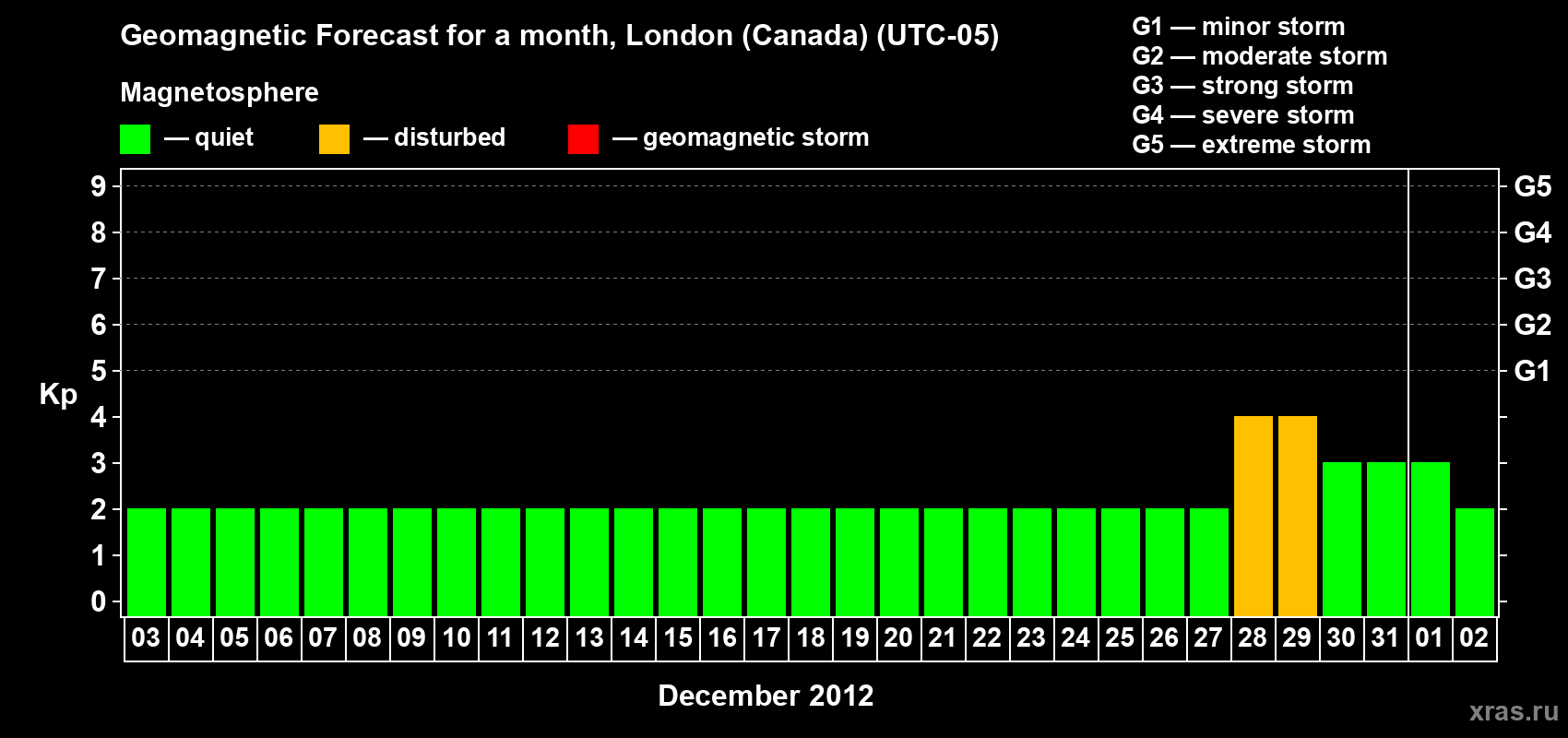 Geomagnetic storm forecast in London (Canada) for Dec 03, 2011