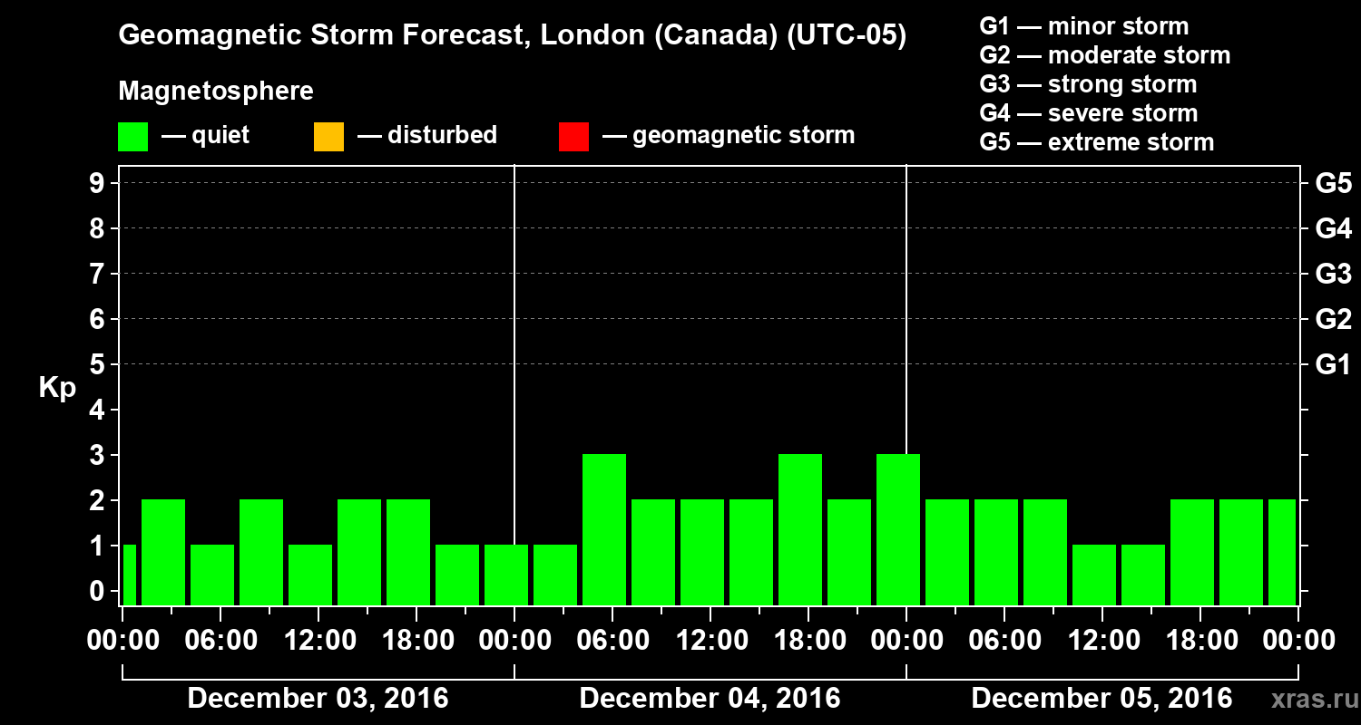 Geomagnetic storm forecast in London (Canada) for Dec 03, 2016