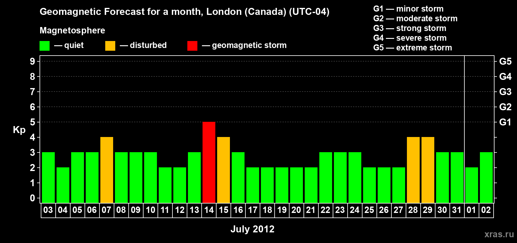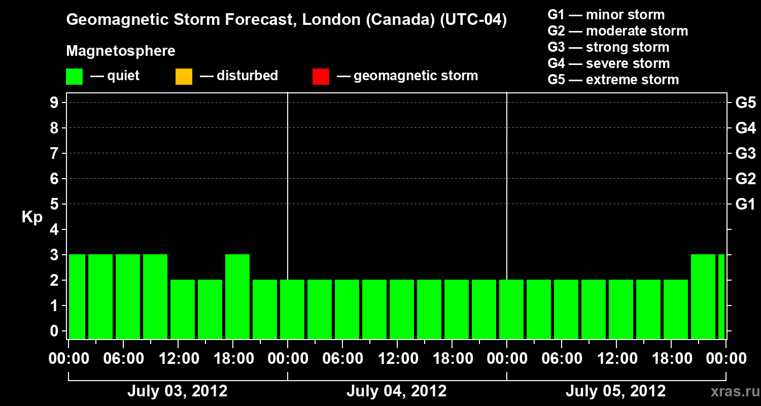 Geomagnetic storm forecast in London (Canada) for Jul 03, 2012