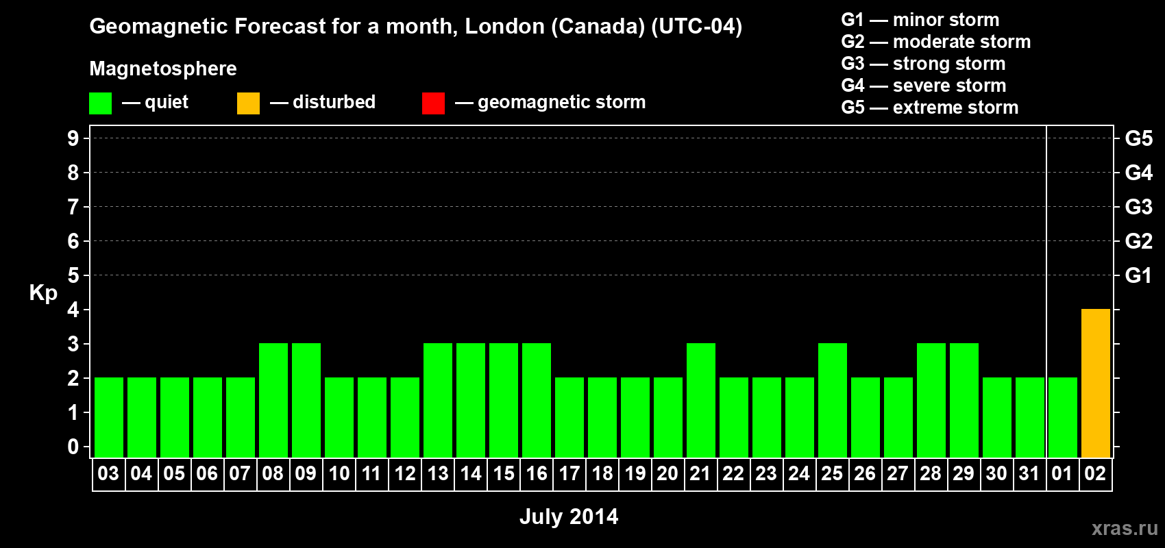 Geomagnetic storm forecast in London (Canada) for Jul 03, 2014