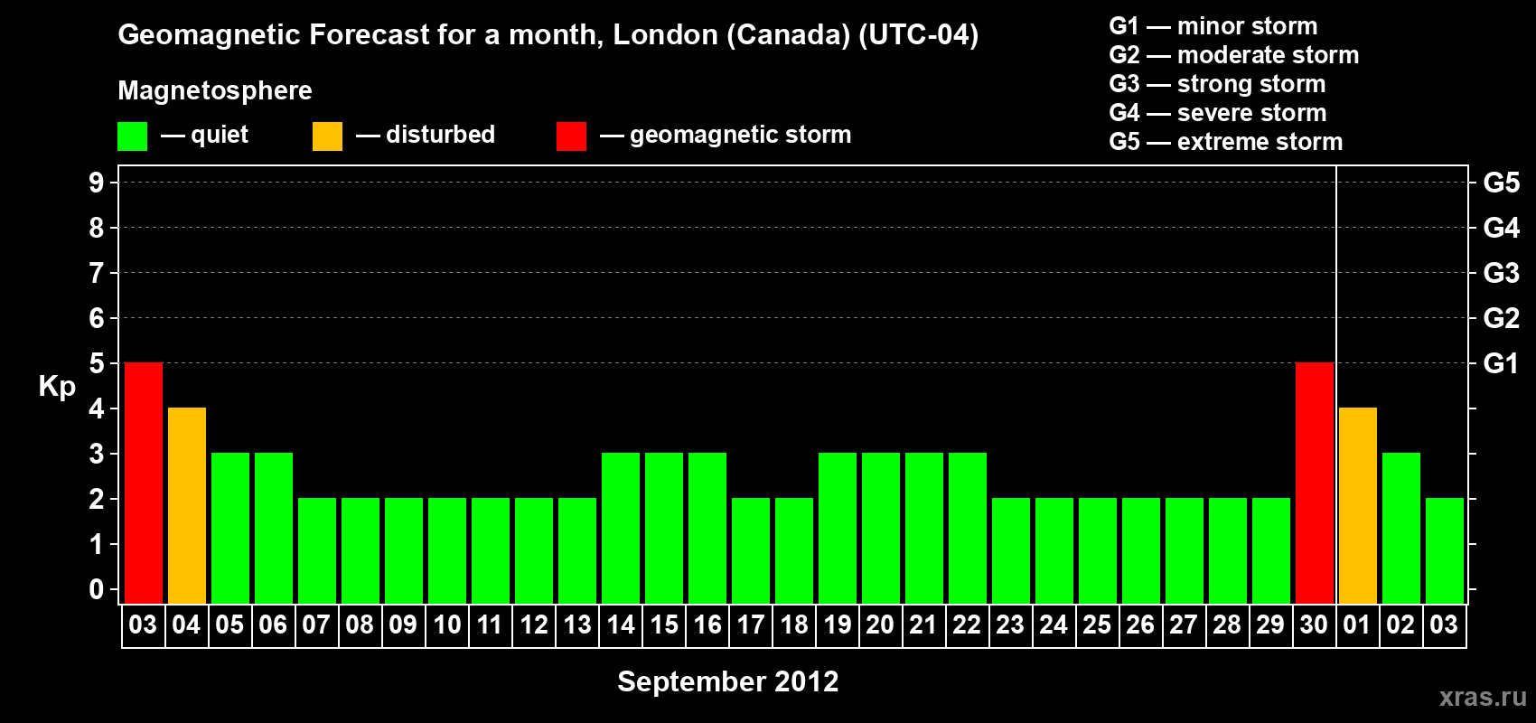 Geomagnetic storm forecast in London (Canada) for Sep 03, 2012
