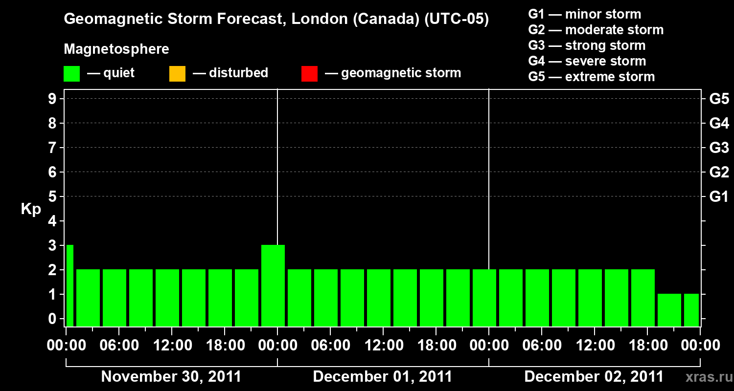 Geomagnetic storm forecast in London (Canada) for Nov 30, 2011