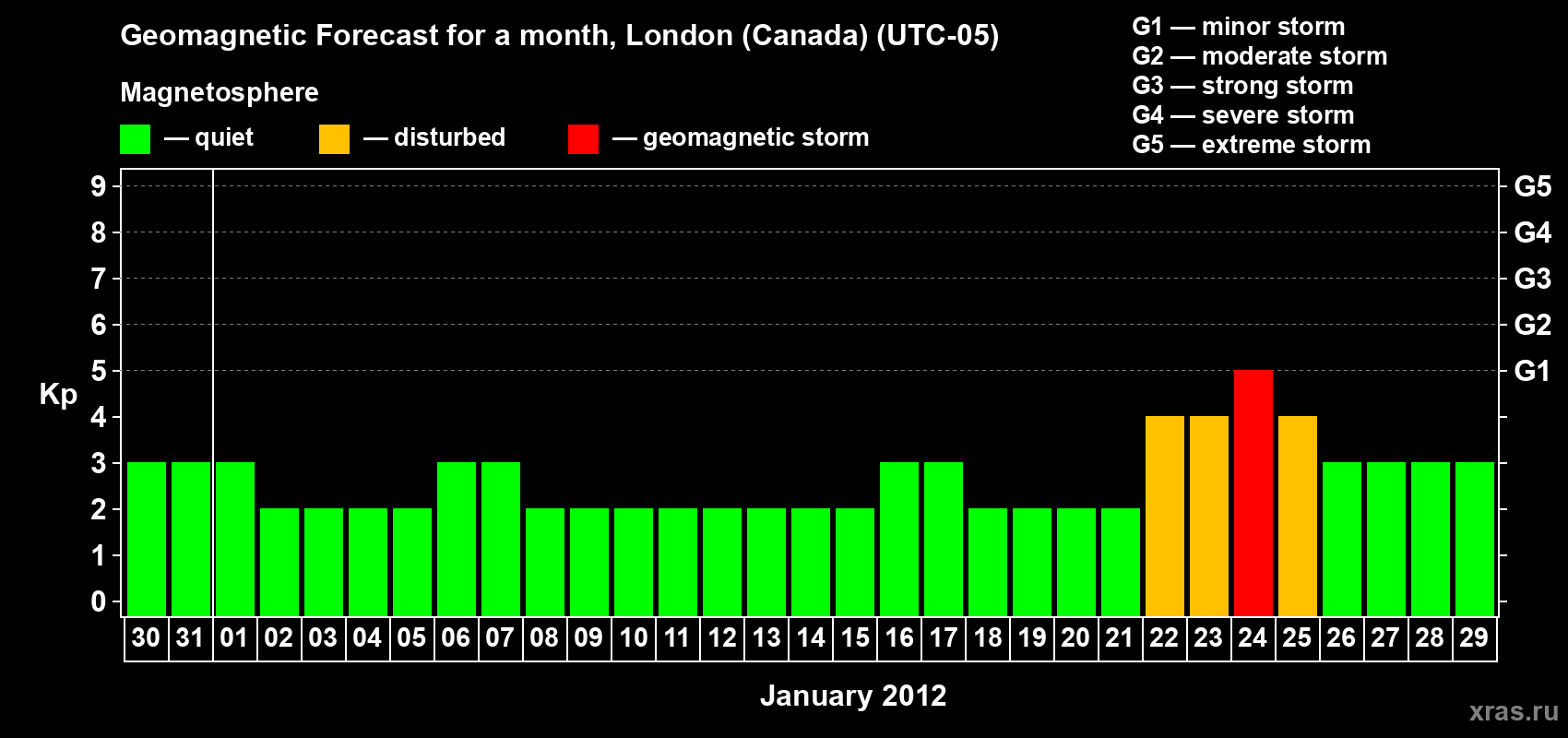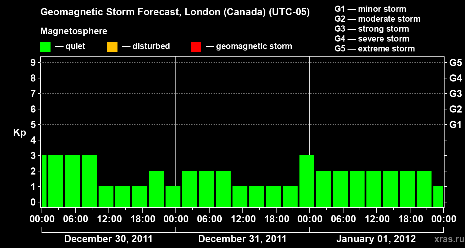 Geomagnetic storm forecast in London (Canada) for Dec 30, 2011