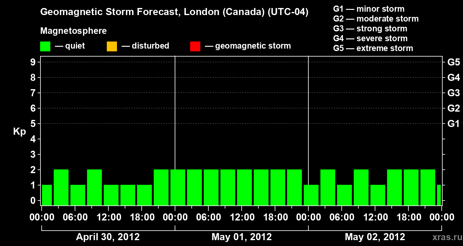 Geomagnetic storm forecast in London (Canada) for Apr 30, 2012