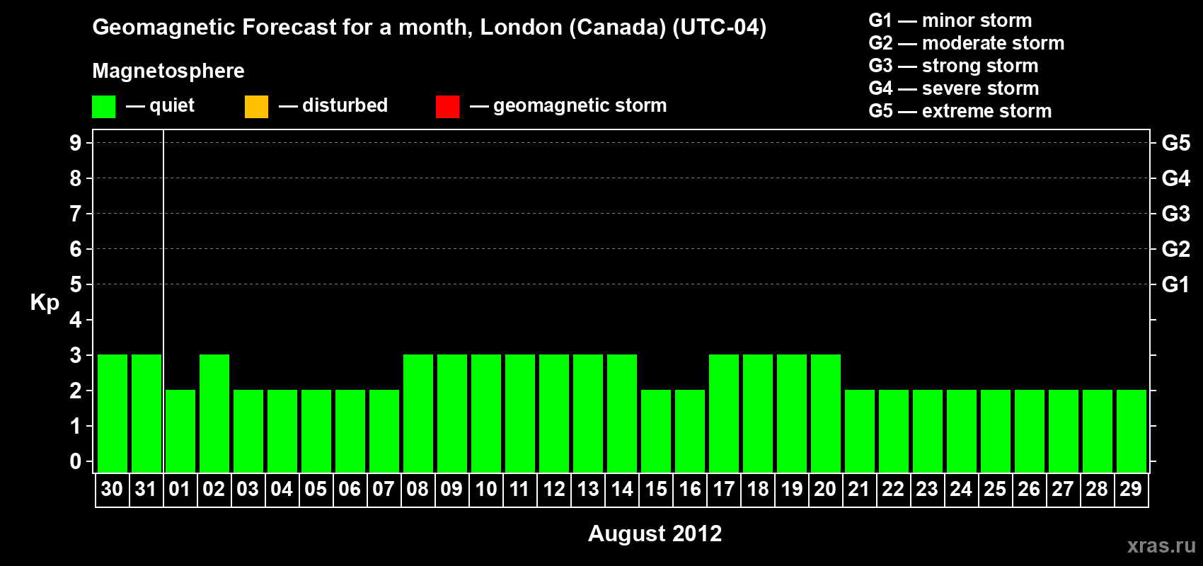 Geomagnetic storm forecast in London (Canada) for Jul 30, 2012