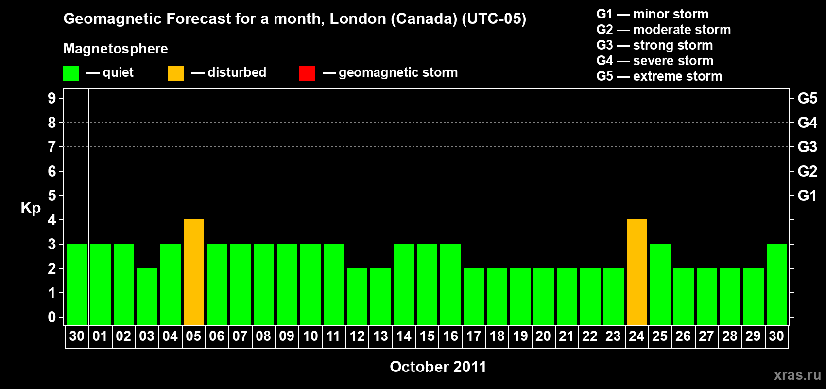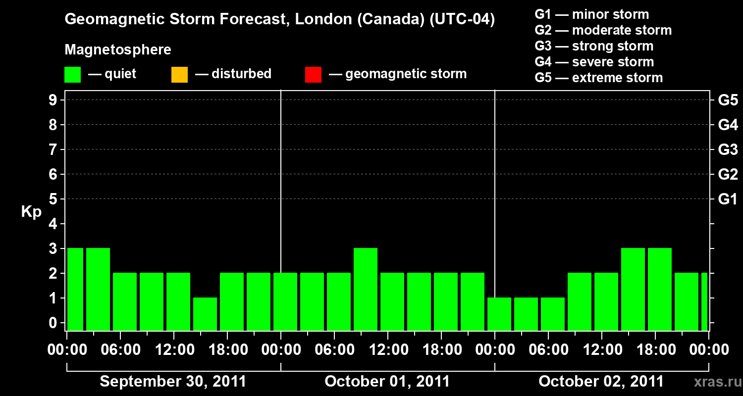 Geomagnetic storm forecast in London (Canada) for Sep 30, 2011