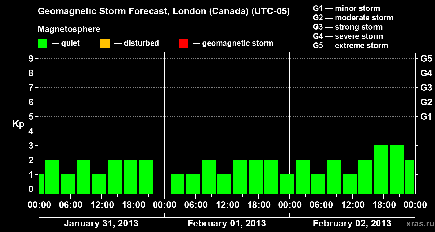 Geomagnetic storm forecast in London (Canada) for Jan 31, 2013