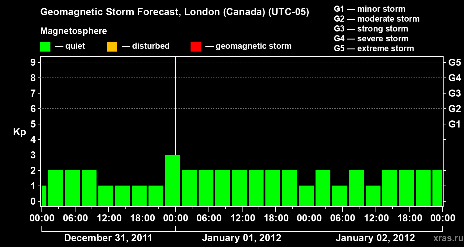 Geomagnetic storm forecast in London (Canada) for Dec 31, 2011